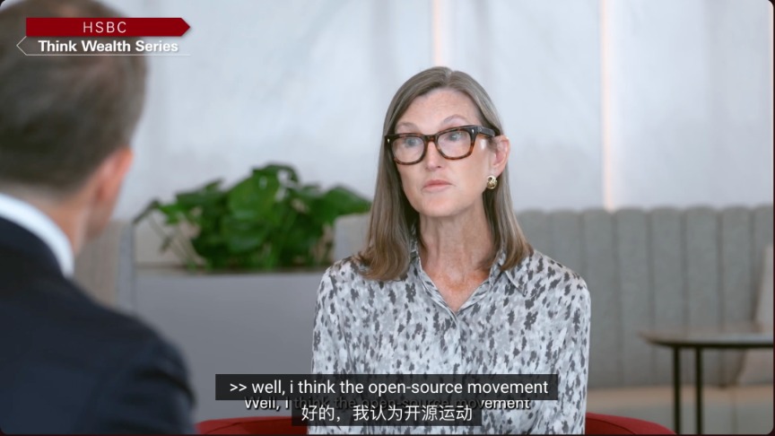 谈及近期OpenAI发布两款开源模型引发的行业讨论,伍德认为,中国的DeepSeek等开源模型实际上发挥了比外界此前认知更深远的引领作用。在她看来,开源生态对创新是一件好事,将进一步加速AI技术的普及与迭代。