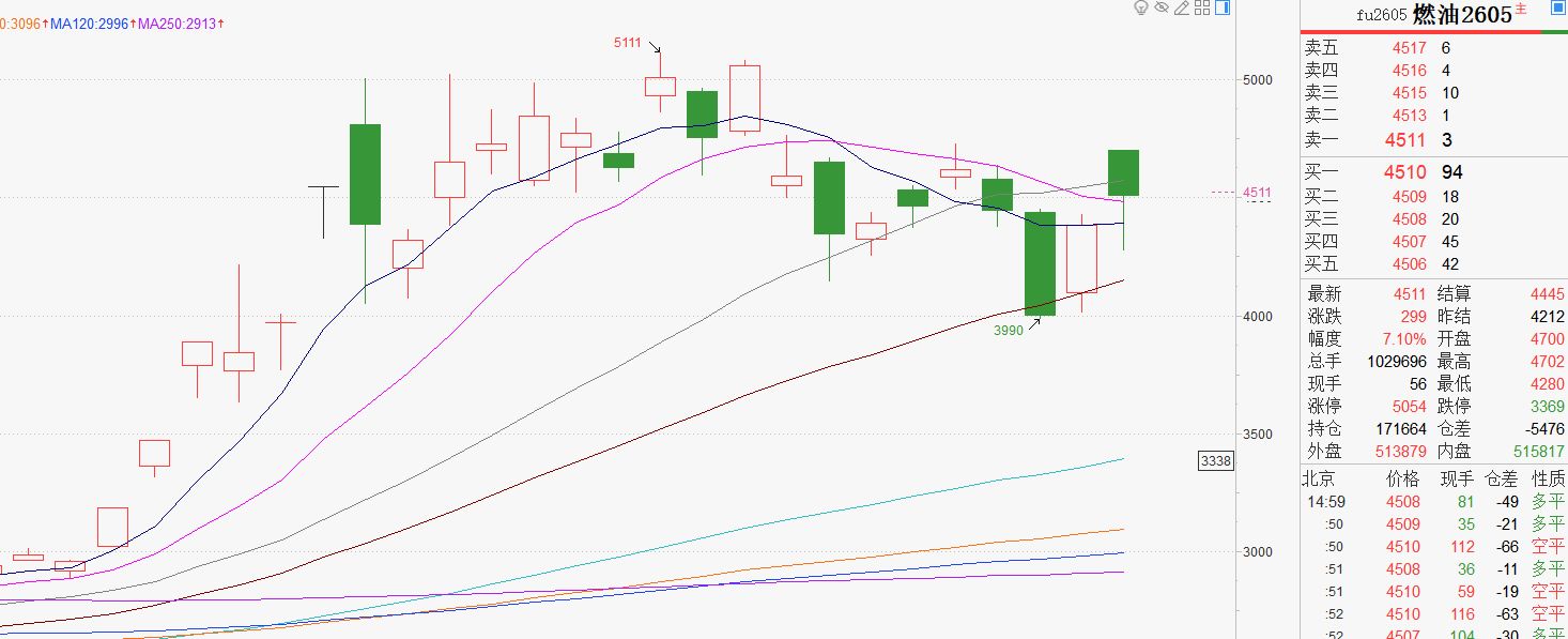 过去一周,国内一些商品期货品种在复杂的地缘局势博弈中剧烈震荡,其中与原油高度联动的燃料油期货震荡剧烈。博易大师行情软件显示,上期所燃料油主力合约从上周一最高暴涨超6%到上周三暴跌超11%,期货行情快速变化出乎很多投资者的预料。