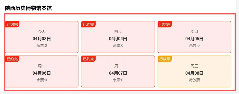 陕西历史博物馆(本馆)、西安博物院、陕西考古博物馆,清明假期三天预约门票已全部售罄。