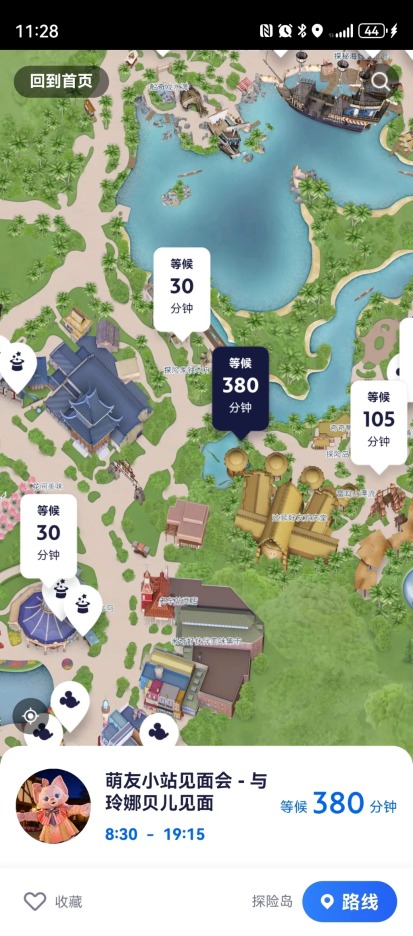 进园后,排队的考验才刚刚开始。中午11时28分许,乐园内热门项目排队时长持续攀升。据度假区官方App显示,“与玲娜贝儿见面”等候时间长达380分钟。