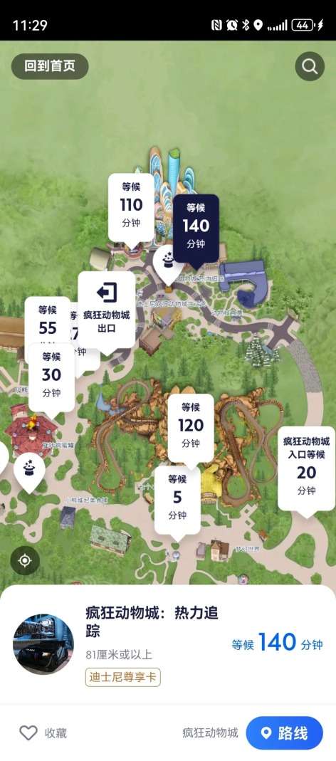 “疯狂动物城:热力追踪”等候时间也要140分钟,“翱翔·飞越地平线”同样超过两小时。