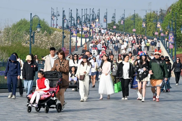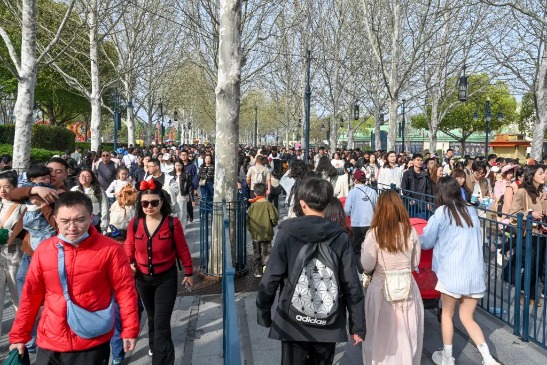 随着部分省市中小学春假与清明假期叠加,4月5日早上8时,也是多地春假启动后的首个周末,上海迪士尼度假区迎来客流高峰,迪士尼地铁站出站后,游客即进入“绕湖”排队模式,步行约半小时方可接近乐园安检区域。