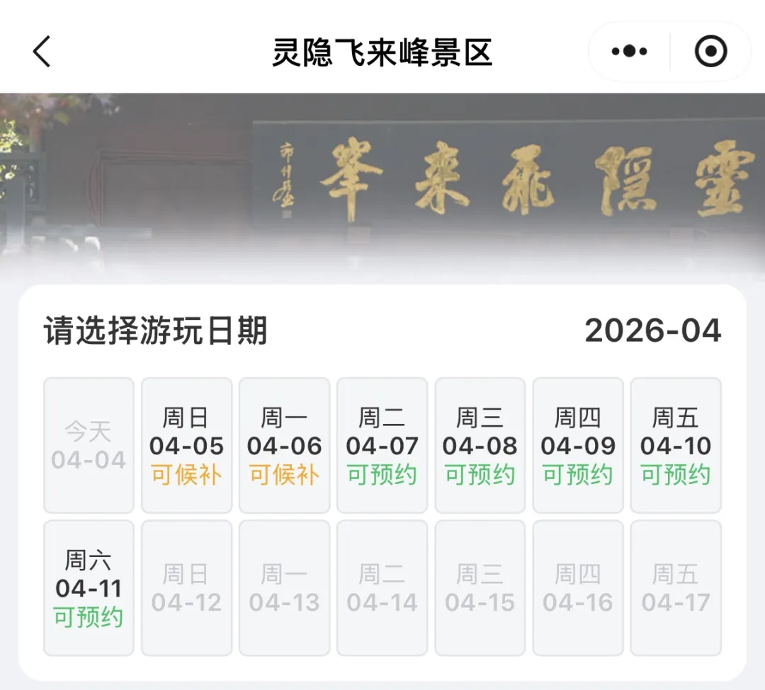 杭州灵隐飞来峰景区预约小程序显示,4月5-6日预约名额已进入候补状态。提醒广大游客,根据景区预约规则,游客可提前7天预约,或最晚在入园前一日20:00前进行线上候补,按序配给,先到先得。在未预约的情况下,当日无法进入景区,请大家一定提前安排好行程,切勿跑空。