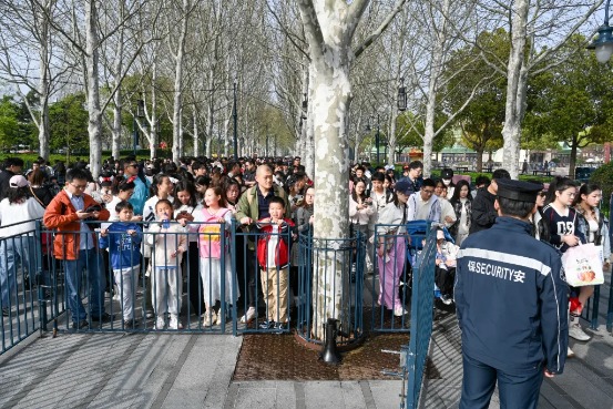 4月5日,上海迪士尼度假区迎来客流高峰,排队等待放行的游客。澎湃新闻记者朱伟辉图