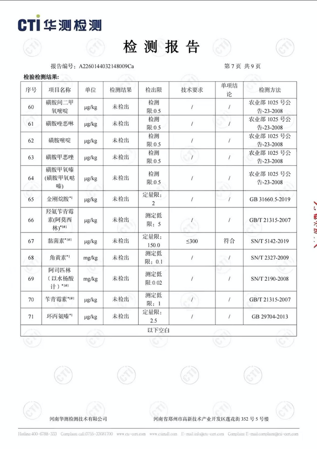 此外,凤集食品集团有限公司发布的检测报告中,浙江和四川两地的检测机