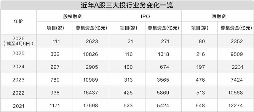 从上市券商营收来看,东吴证券研究所联席所长孙婷表示,受一二级市场逆周期调节机制、阶段性收紧IPO节奏等影响,2024年以来IPO发行速度有所放缓,券商投行业务收入持续下滑。在低基数、再融资显著回暖及港股IPO大增的背景下,2025年25家上市券商实现投行收入324亿元,同比增长38%。其中,红塔证券、国联民生、华安证券的投行收入同比增幅较高。