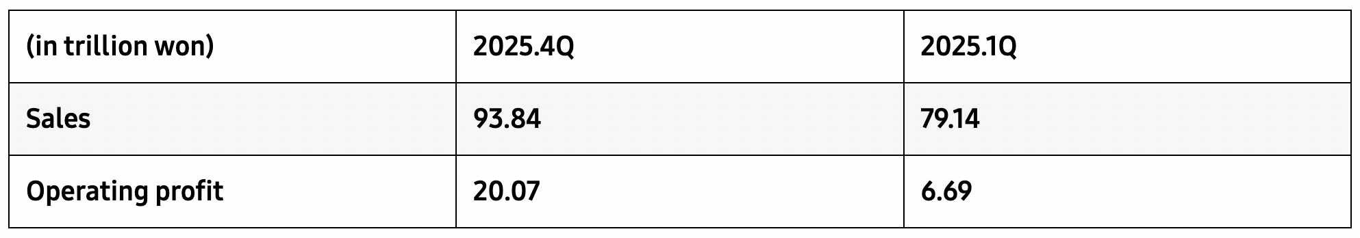 三星电子2025年四季度及2025年一季度合并财务数据图片来源:三星电子