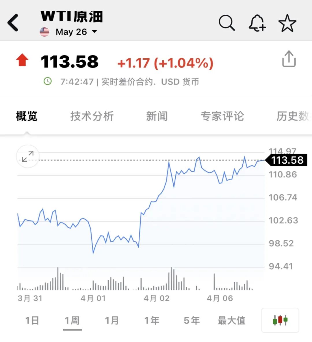 WTI 5月原油期货涨近0.78%,报112.41美元/桶,连续两个交易日刷新2022年6月以来收盘高位。布伦特6月原油期货涨近0.68%,报109.77美元/桶,刷新3月20日以来高位。