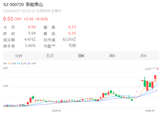 其他热门个股中,新能泰山今日9.93%涨停,成功实现10天8板,最新总市值82亿元。
