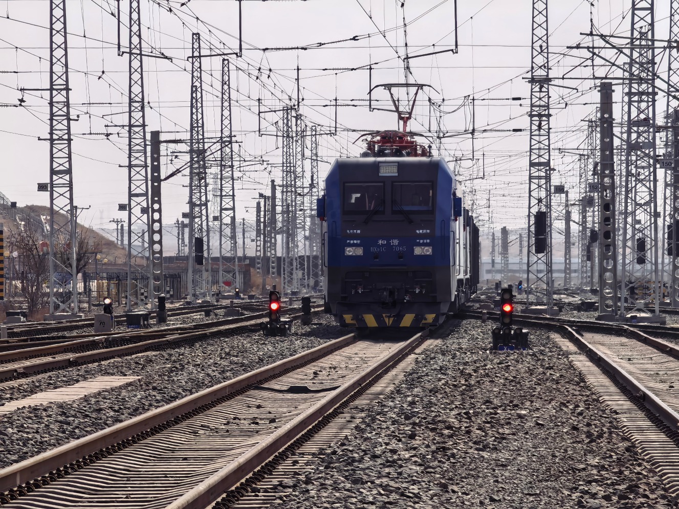电力机车行驶在改造后的宁东铁路电气化线上