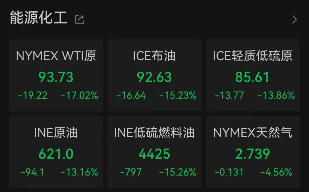 受上述消息影响,国际油价持续低位徘徊。北京时间19:56,NYMEX WTI原油大跌17.02%,ICE布油大跌15.23%。