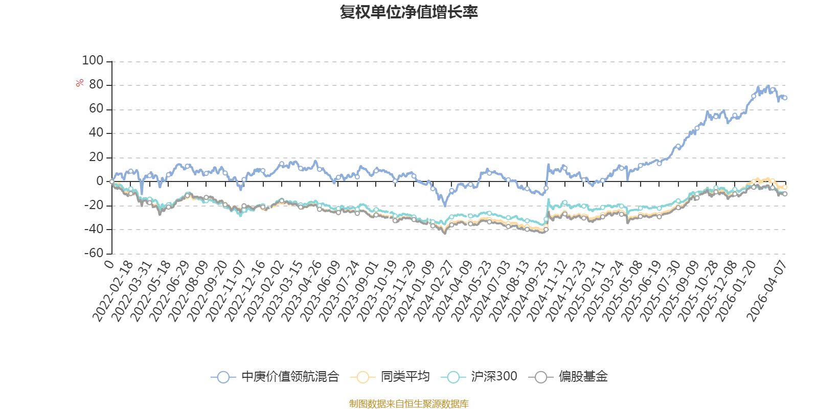 截至4月7日,中庚价值领航混合近三个月复权单位净值增长率为3.31%,位于同类可比基金11/130;近半年复权单位净值增长率为8.54%,位于同类可比基金16/130;近一年复权单位净值增长率为68.41%,位于同类可比基金15/130;近三年复权单位净值增长率为53.09%,位于同类可比基金7/126。