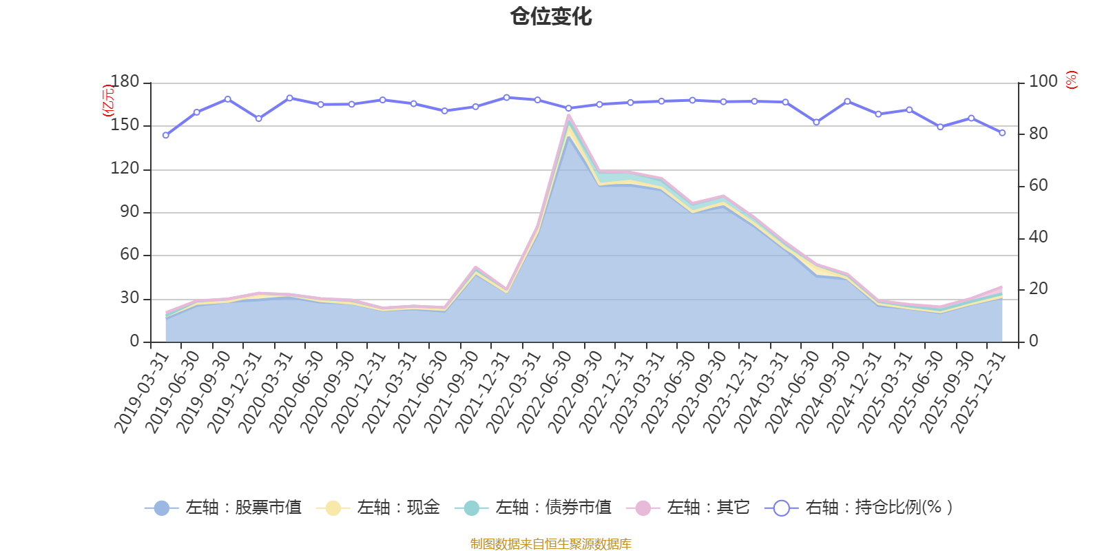 据定期报告数据统计,近三年平均股票仓位为89.08%,同类平均为86.17%。2021年末基金达到94.28%的最高仓位,2019年一季度末最低,为79.73%。