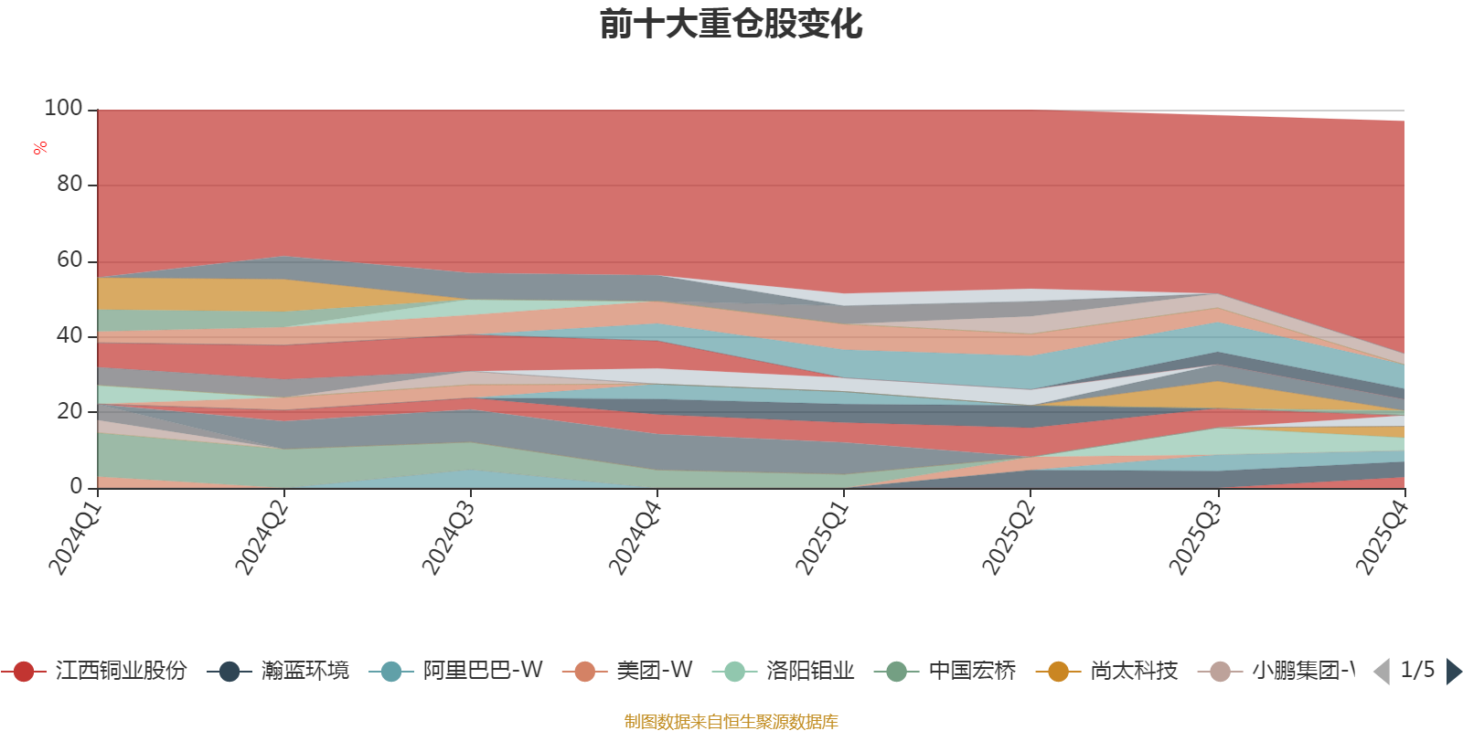 截至2025年末,基金十大重仓股分别是鸿路钢构、瀚蓝环境、洛阳钼业、尚太科技、金风科技、阿里巴巴-W、图南股份、中创新航、江西铜业股份、腾讯控股。