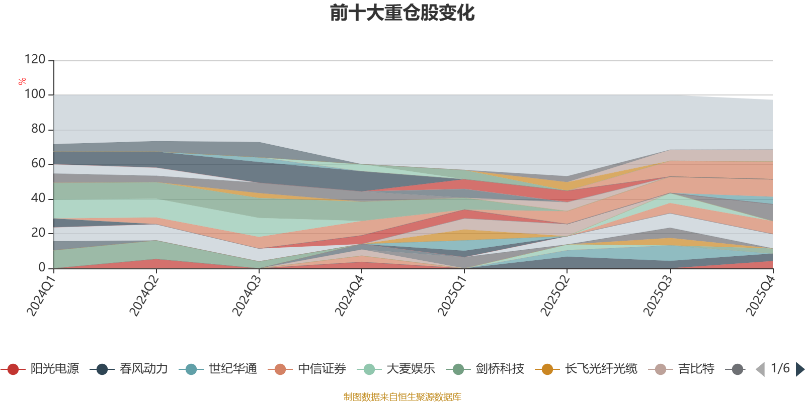 该基金持股集中度较高。截至2025年末,基金十大重仓股分别是中际旭创、新易盛、思源电气、涛涛车业、源杰科技、胜宏科技、应流股份、春风动力、阳光电源、剑桥科技。