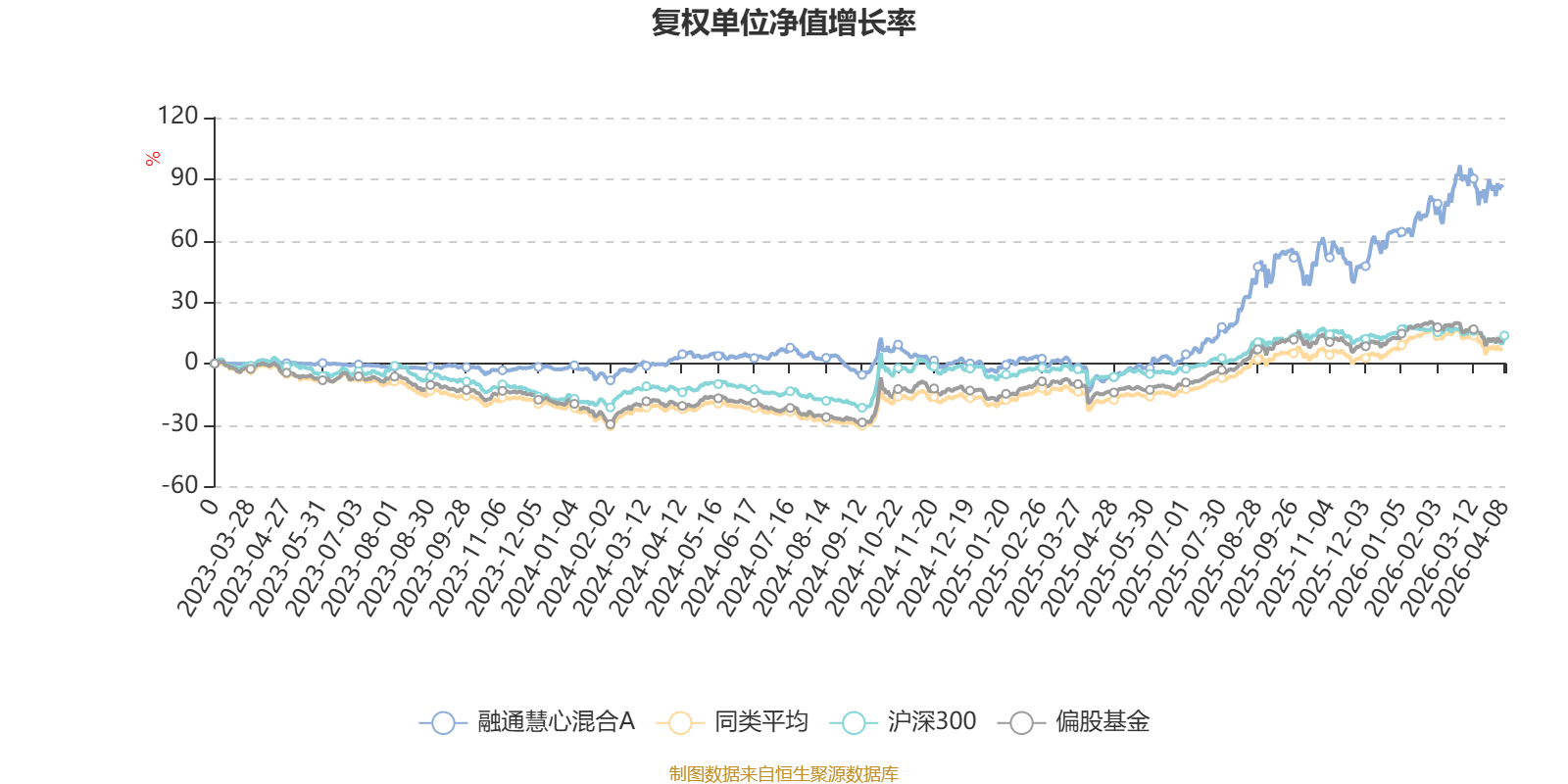 截至4月7日,融通慧心混合A近三个月复权单位净值增长率为12.48%,位于同类可比基金19/689;近半年复权单位净值增长率为21.11%,位于同类可比基金36/689;近一年复权单位净值增长率为115.21%,位于同类可比基金16/685;近三年复权单位净值增长率为85.05%,位于同类可比基金11/417。
