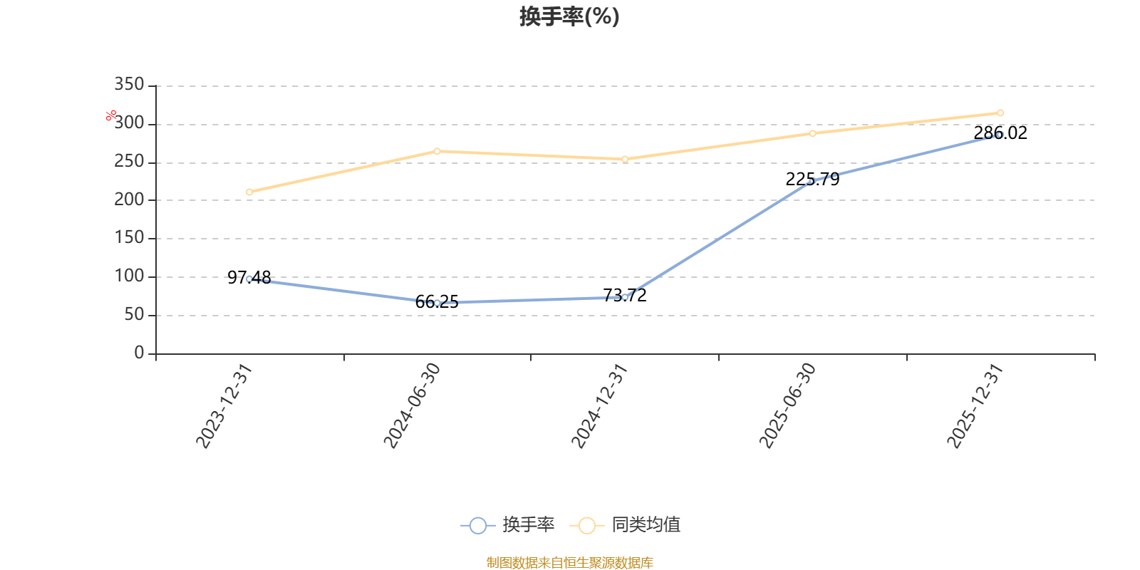 截至2025年12月31日,基金最近一年换手率约521.14%,持续低于同类均值。