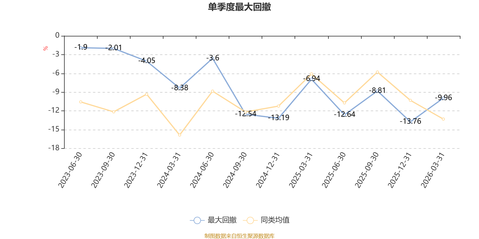 截至4月7日,基金近三年最大回撤为23.29%,同类可比基金排名56/394。单季度最大回撤出现在2025年四季度,为13.76%。