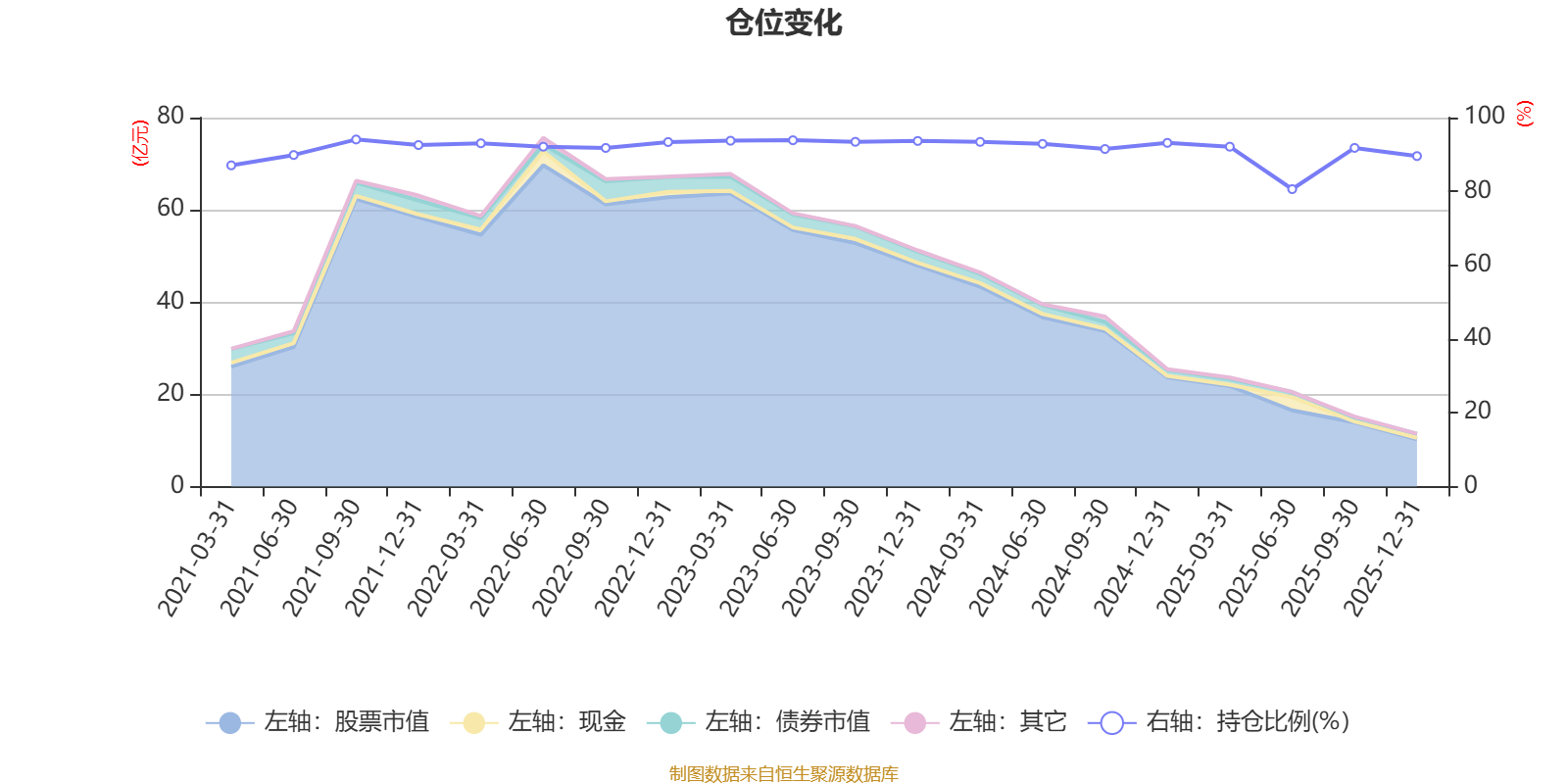 据定期报告数据统计,近三年平均股票仓位为91.64%,同类平均为86.17%。2021年三季度末基金达到94.07%的最高仓位,2025年上半年末最低,为80.61%。