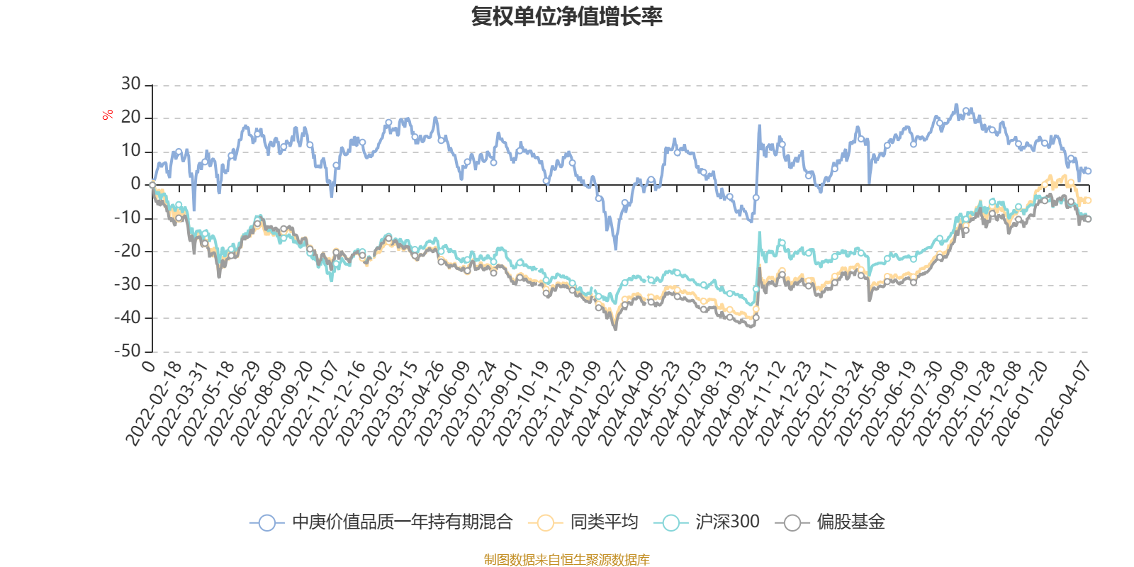 截至4月7日,中庚价值品质一年持有期混合近三个月复权单位净值增长率为-8.09%,位于同类可比基金101/130;近半年复权单位净值增长率为-13.95%,位于同类可比基金117/130;近一年复权单位净值增长率为3.88%,位于同类可比基金125/130;近三年复权单位净值增长率为-8.82%,位于同类可比基金111/126。