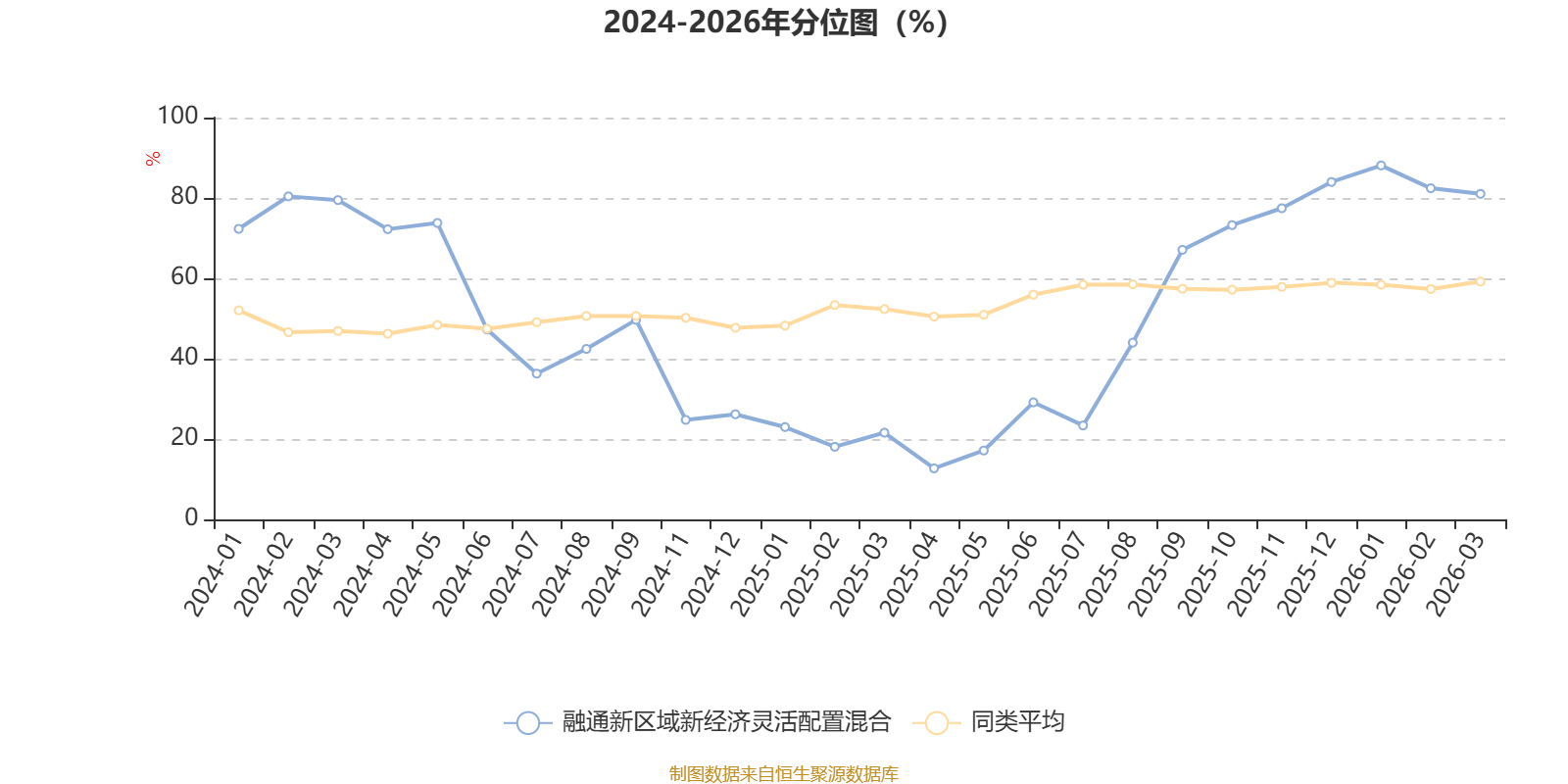 通过所选区间该基金净值增长率分位图,可以观察该基金与同类基金业绩比较情况。图为坐标原点到区间内某时点的净值增长率在同类基金中的分位数。