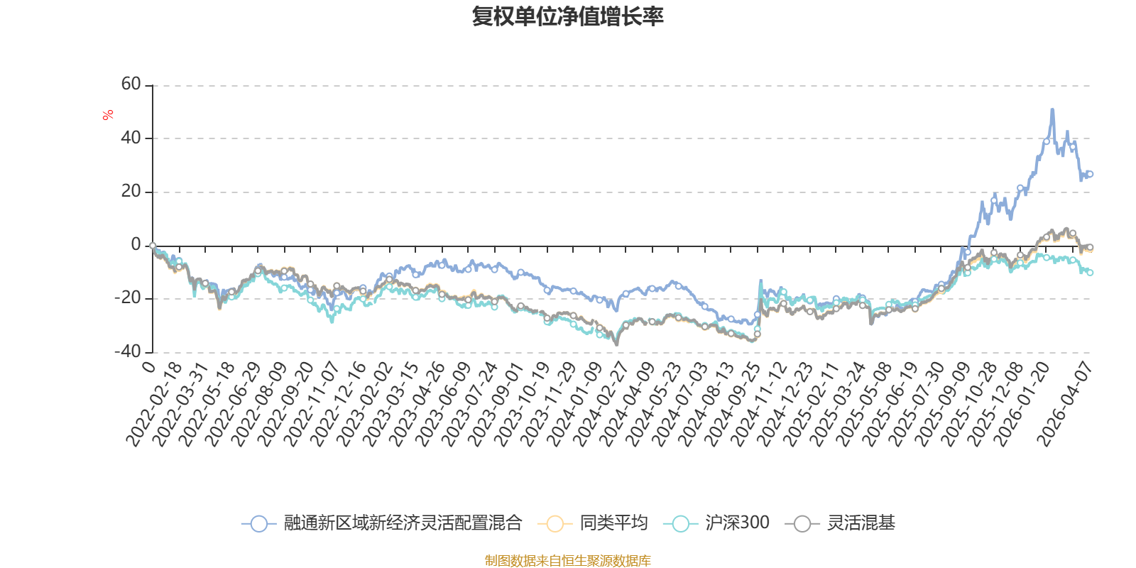 截至4月7日,融通新区域新经济灵活配置混合近三个月复权单位净值增长率为-5.09%,位于同类可比基金840/1287;近半年复权单位净值增长率为12.30%,位于同类可比基金115/1286;近一年复权单位净值增长率为80.00%,位于同类可比基金119/1286;近三年复权单位净值增长率为36.01%,位于同类可比基金207/1286。