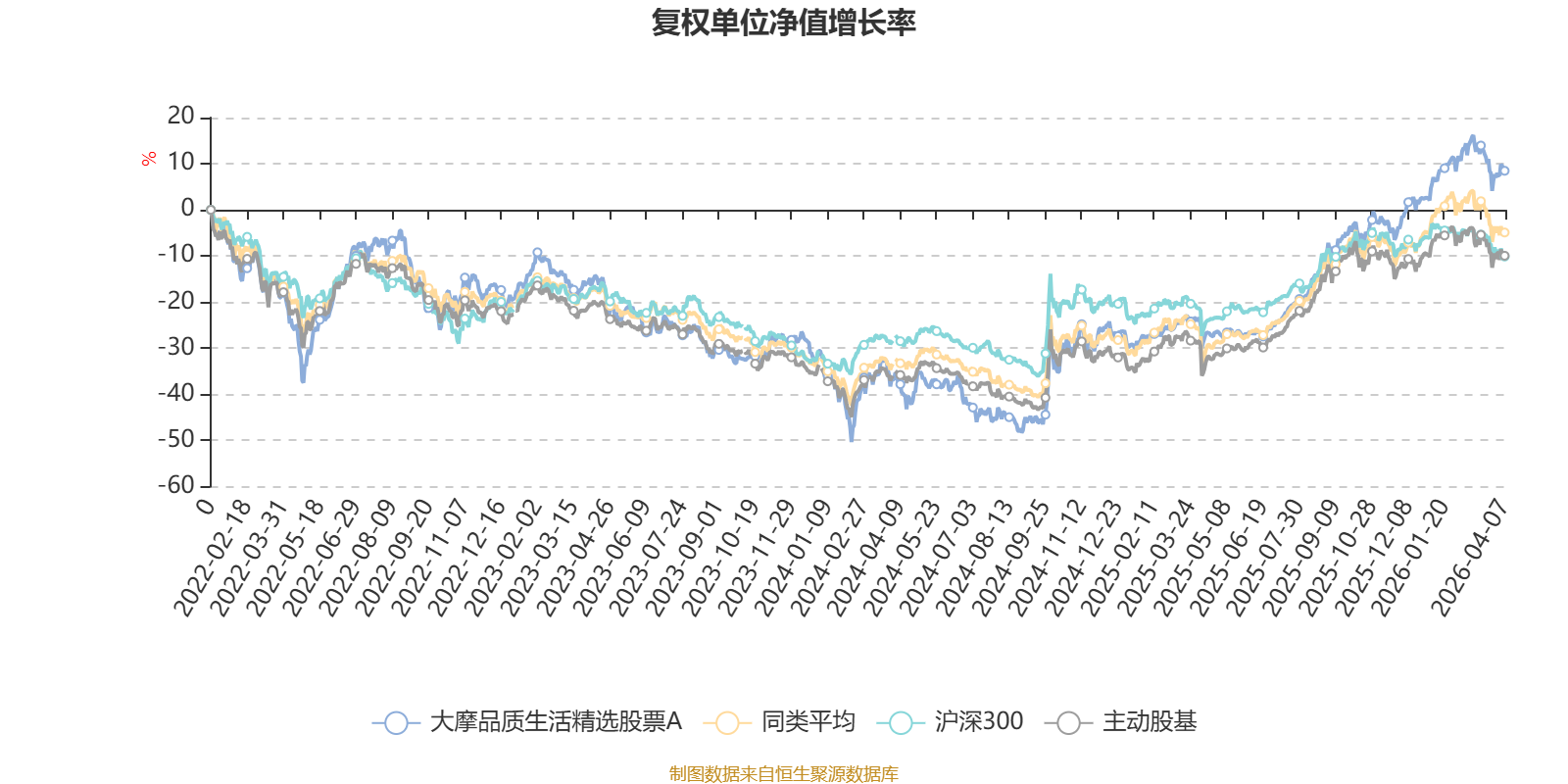 截至4月7日,大摩品质生活精选股票A近三个月复权单位净值增长率为1.33%,位于同类可比基金21/167;近半年复权单位净值增长率为11.82%,位于同类可比基金13/167;近一年复权单位净值增长率为54.79%,位于同类可比基金37/165;近三年复权单位净值增长率为27.47%,位于同类可比基金41/157。