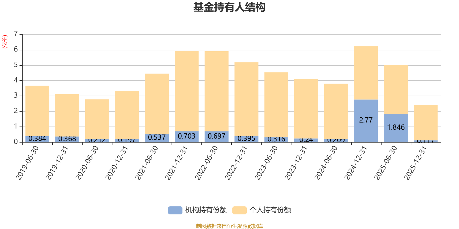 截至2025年12月31日,基金持有人共计11.81万户,合计持有2.41亿份。其中管理人员工持有7493.95份,机构持有份额占比4.84%,个人投资者占比95.16%。