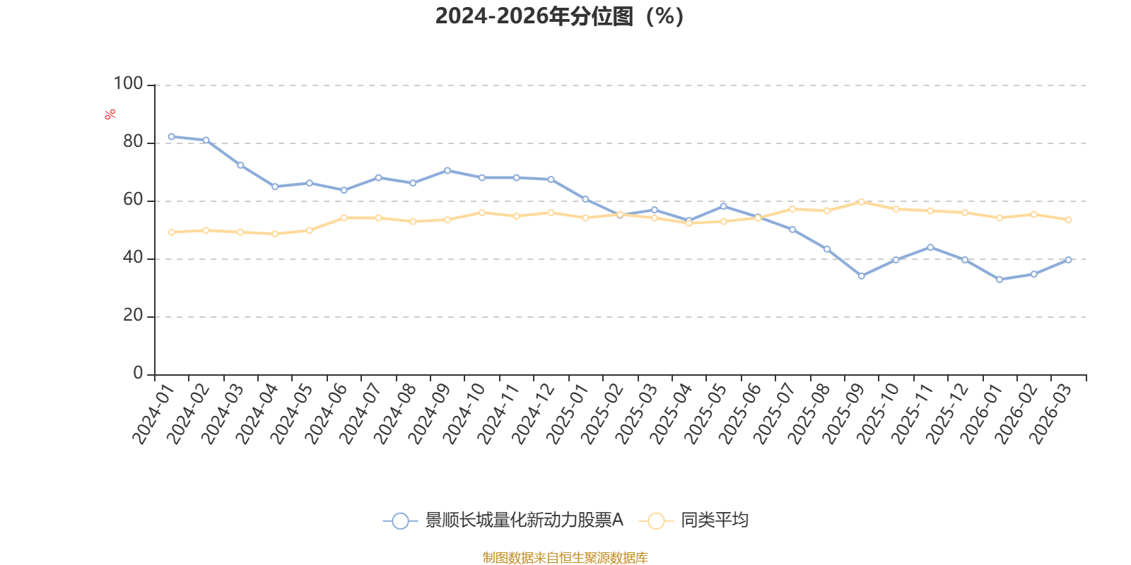 通过所选区间该基金净值增长率分位图,可以观察该基金与同类基金业绩比较情况。图为坐标原点到区间内某时点的净值增长率在同类基金中的分位数。