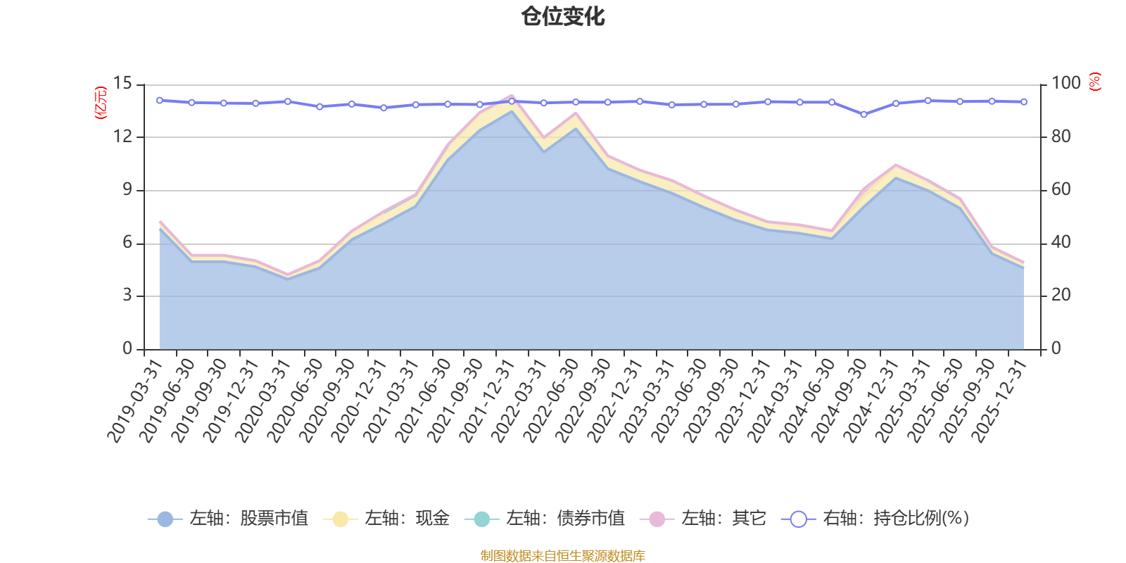 据定期报告数据统计,近三年平均股票仓位为92.8%,同类平均为88.27%。2019年一季度末基金达到94%的最高仓位,2024年三季度末最低,为88.7%。