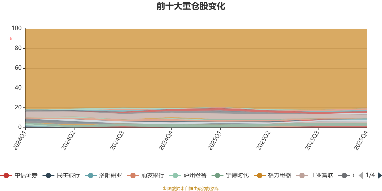 截至2025年末,基金十大重仓股分别是贵州茅台、宁德时代、中国平安、紫金矿业、中际旭创、工业富联、新易盛、招商银行、中信证券、恒瑞医药。