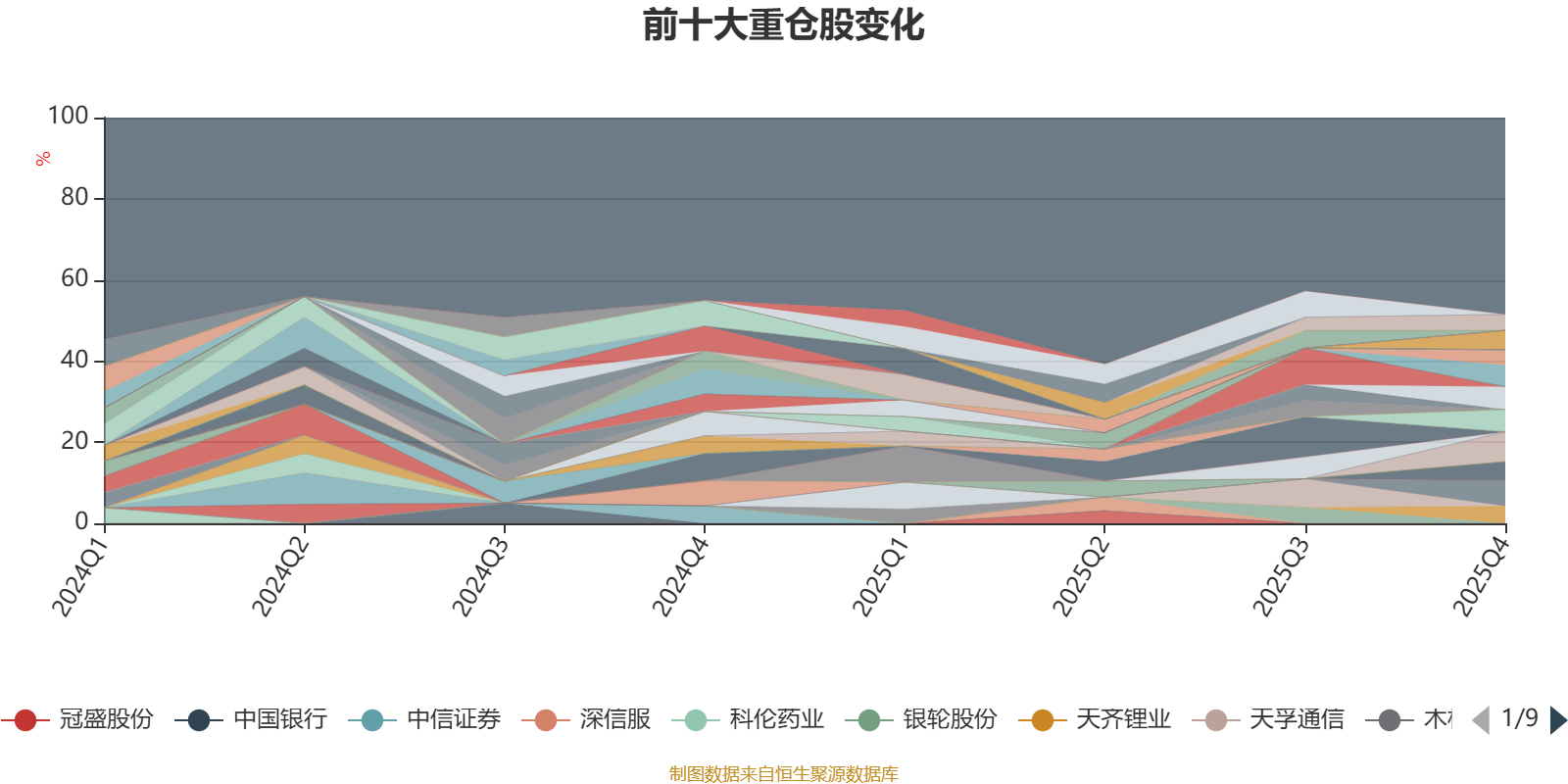 截至2025年末,基金十大重仓股分别是万华化学、东方雨虹、同花顺、江山股份、扬农化工、安琪酵母、中国国航、天齐锂业、立讯精密、荣盛石化。