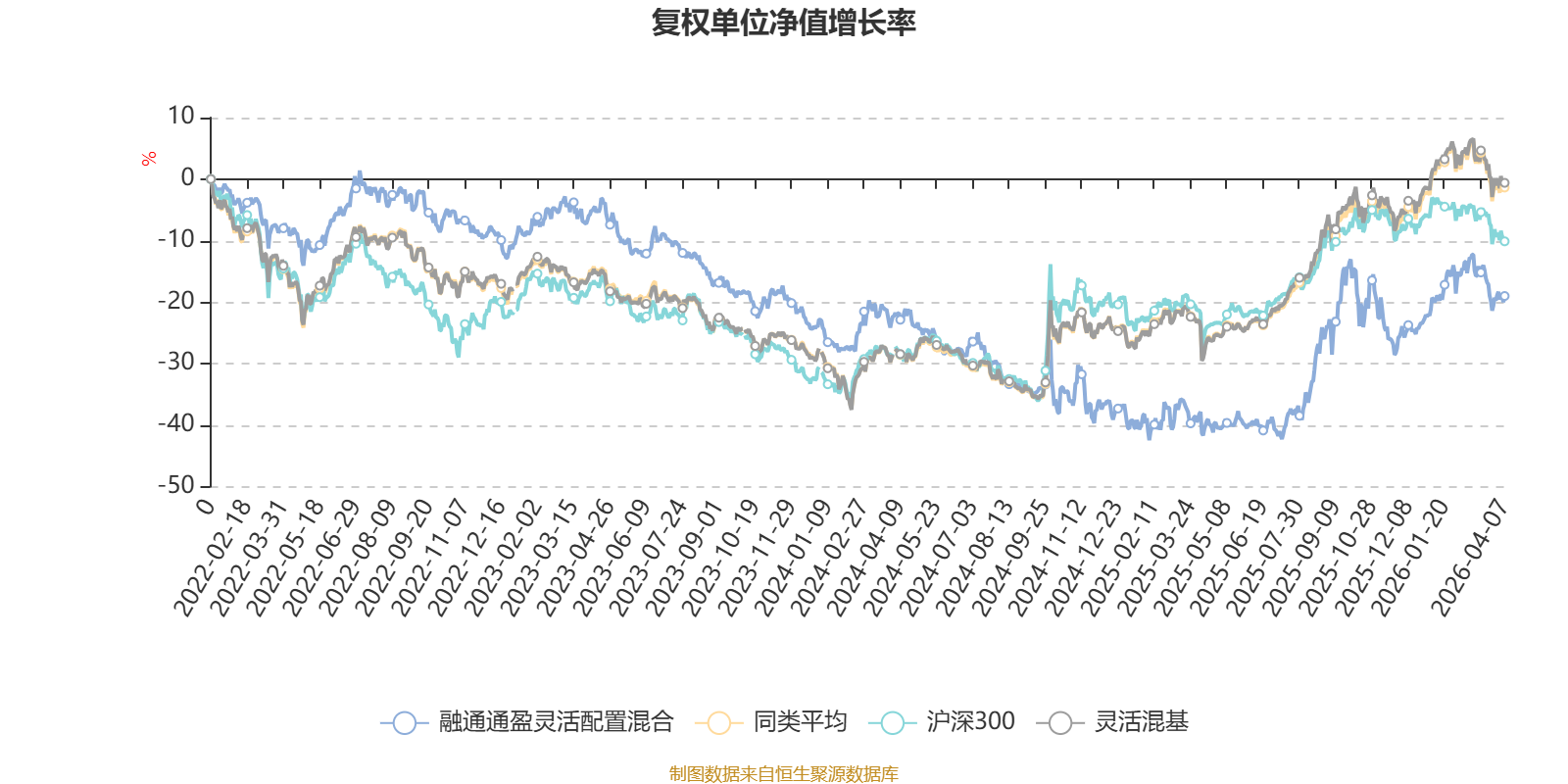截至4月7日,融通通盈灵活配置混合近三个月复权单位净值增长率为0.66%,位于同类可比基金288/1287;近半年复权单位净值增长率为-5.05%,位于同类可比基金964/1286;近一年复权单位净值增长率为38.04%,位于同类可比基金492/1286;近三年复权单位净值增长率为-15.01%,位于同类可比基金1132/1286。