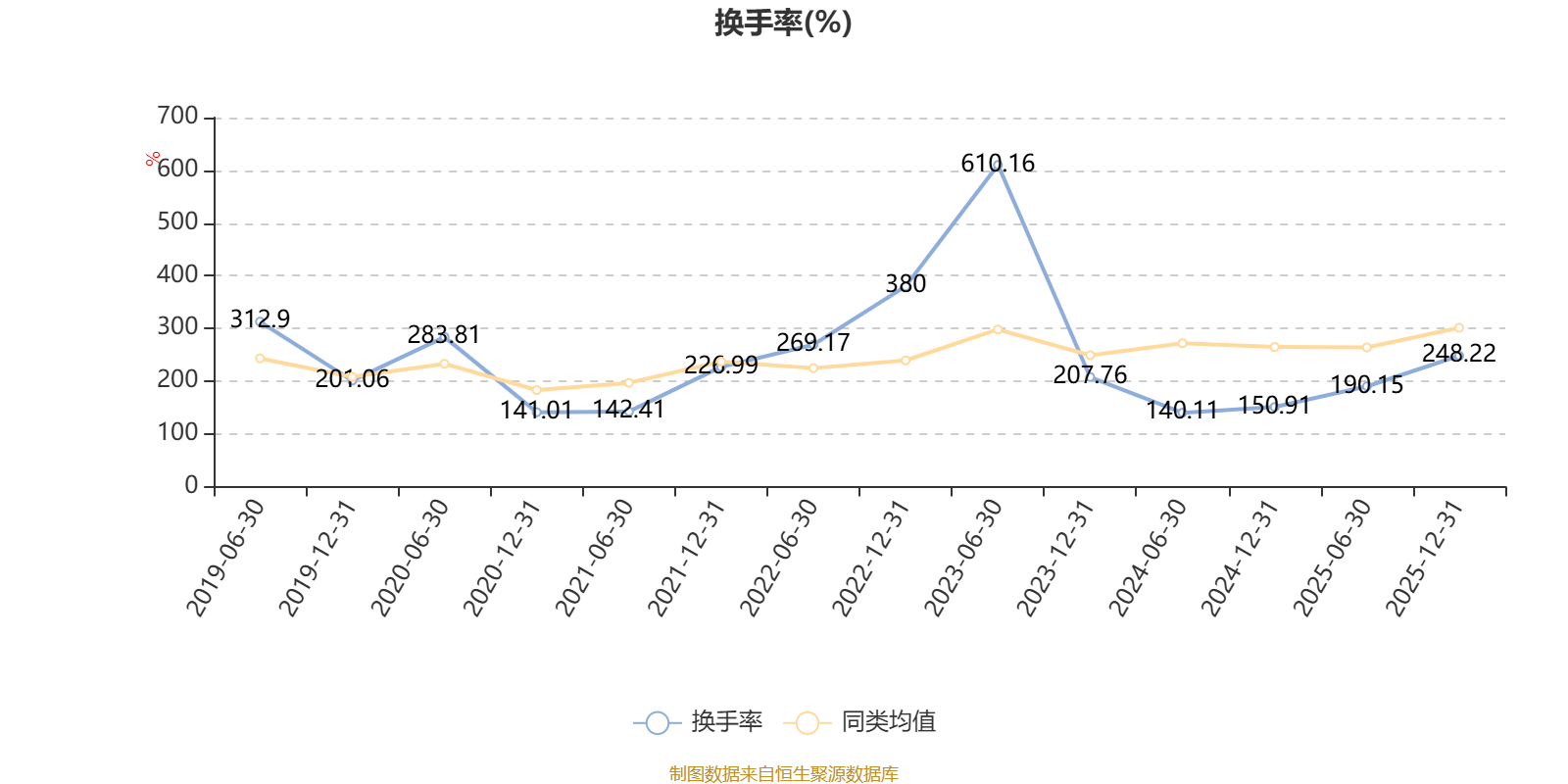 截至2025年12月31日,基金最近一年换手率约435.05%,持续2年低于同类均值。
