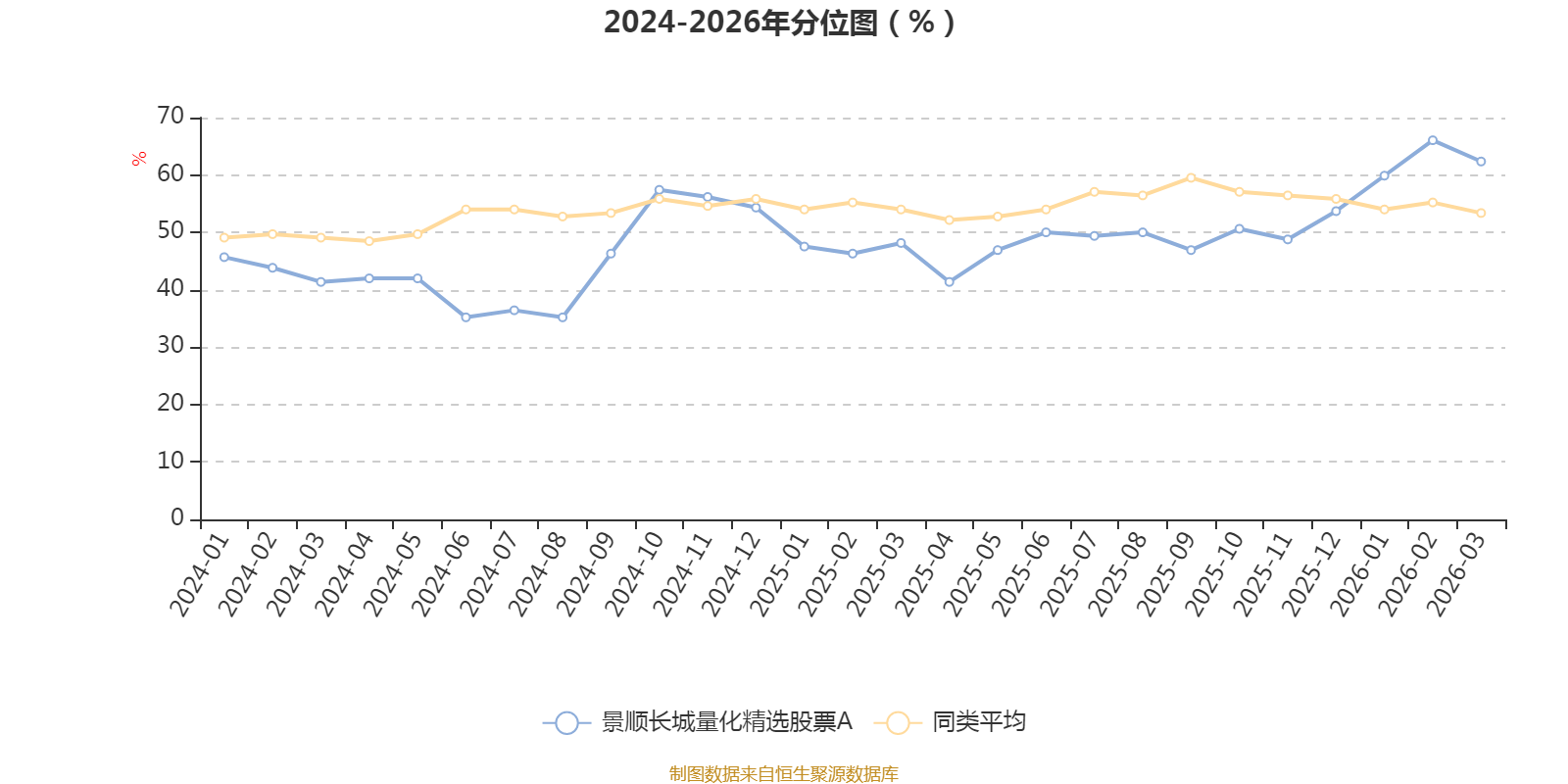 通过所选区间该基金净值增长率分位图,可以观察该基金与同类基金业绩比较情况。图为坐标原点到区间内某时点的净值增长率在同类基金中的分位数。