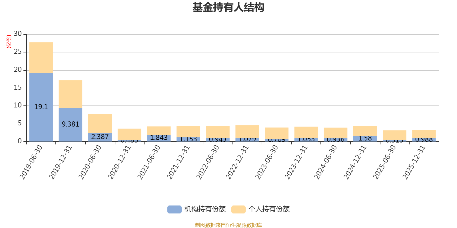 截至2025年12月31日,基金持有人共计8.14万户,合计持有3.26亿份。其中管理人员工持有11.24万份,占比0.03%,机构持有份额占比30.31%,个人投资者占比69.69%。