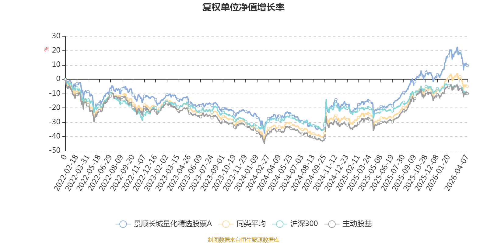 截至4月7日,景顺长城量化精选股票A近三个月复权单位净值增长率为-2.03%,位于同类可比基金46/167;近半年复权单位净值增长率为5.05%,位于同类可比基金39/167;近一年复权单位净值增长率为46.83%,位于同类可比基金60/165;近三年复权单位净值增长率为25.27%,位于同类可比基金47/157。