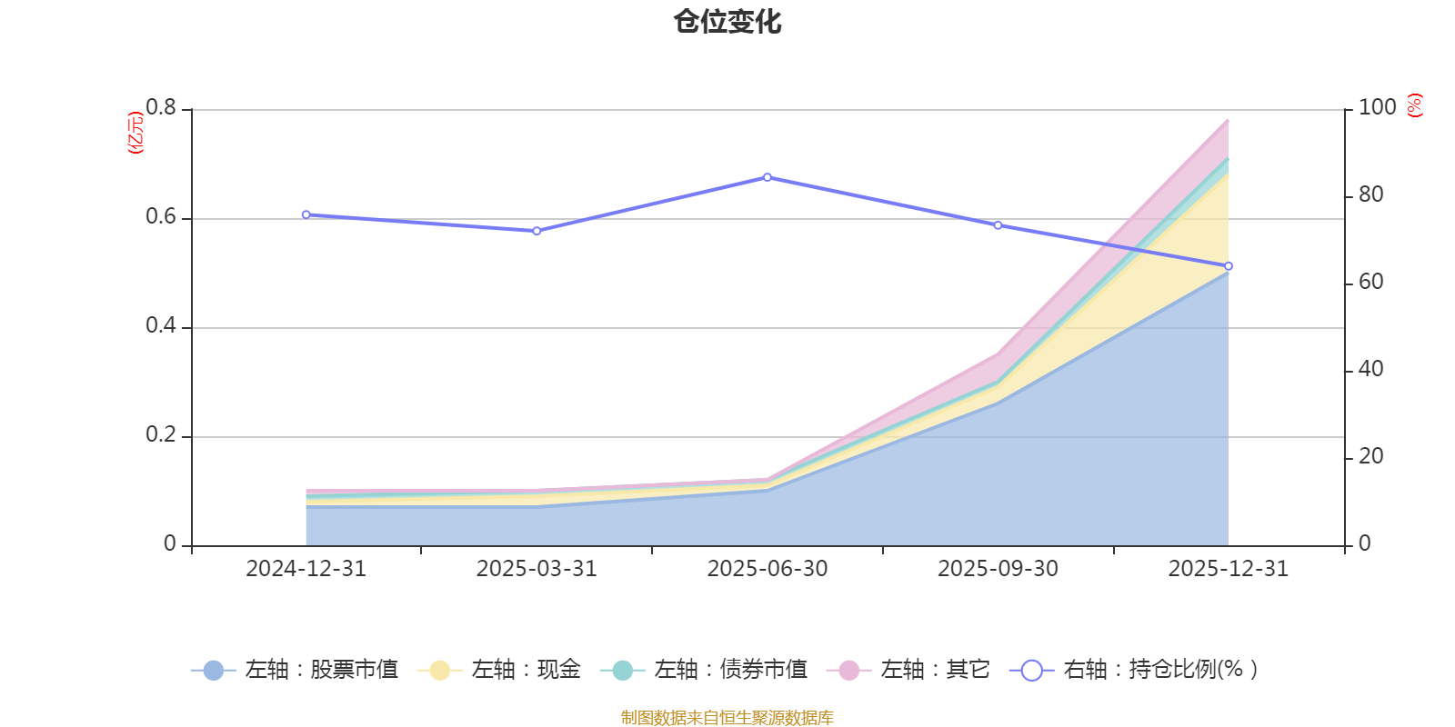 据定期报告数据统计,成立以来平均股票仓位为73.91%,同类平均为88.34%。2025年上半年末基金达到84.36%的最高仓位,2025年末最低,为64.01%。