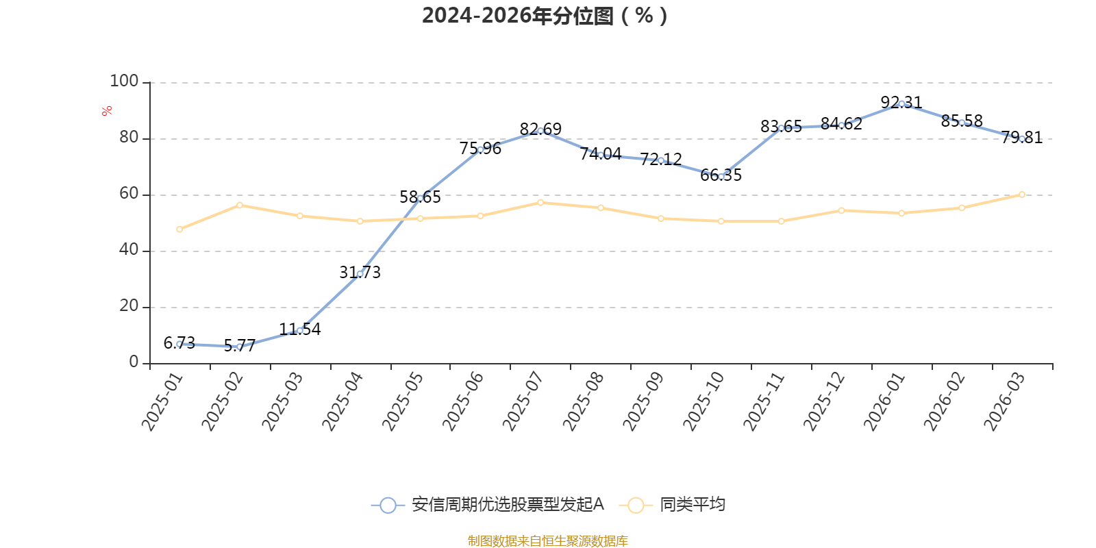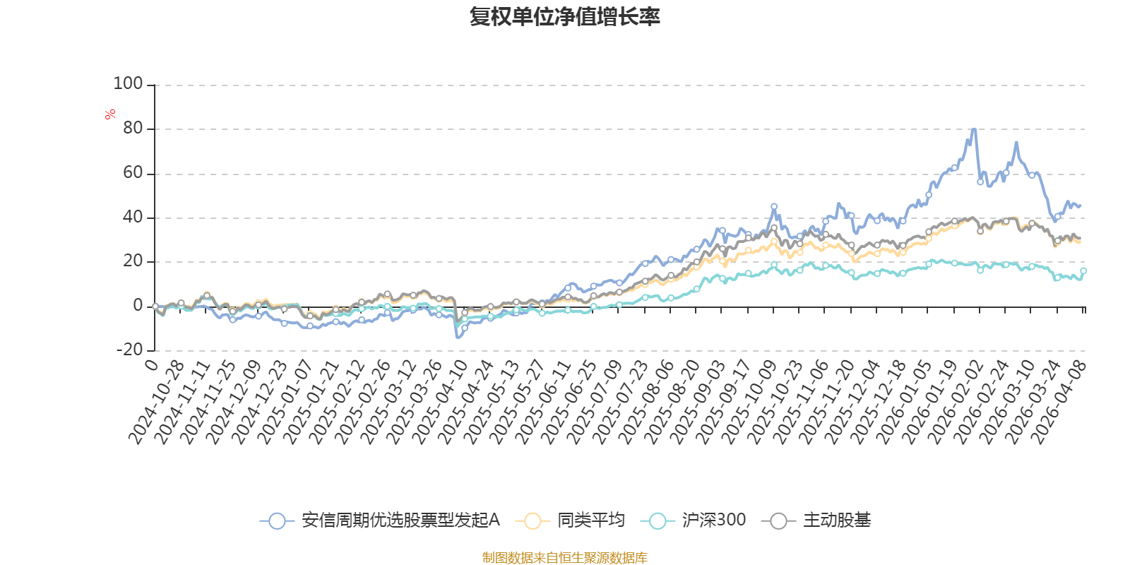 截至4月7日,安信周期优选股票型发起A近三个月复权单位净值增长率为-6.73%,位于同类可比基金94/121;近半年复权单位净值增长率为4.08%,位于同类可比基金50/121;近一年复权单位净值增长率为69.98%,位于同类可比基金16/120。
