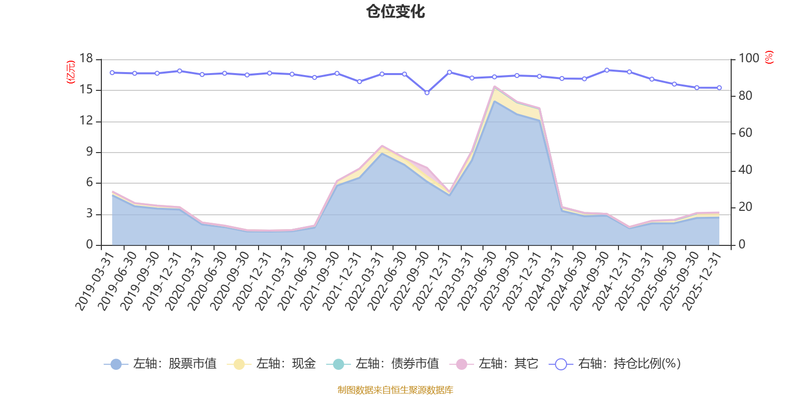 据定期报告数据统计,近三年平均股票仓位为89.52%,同类平均为88.27%。2024年三季度末基金达到94.13%的最高仓位,2022年三季度末最低,为81.99%。
