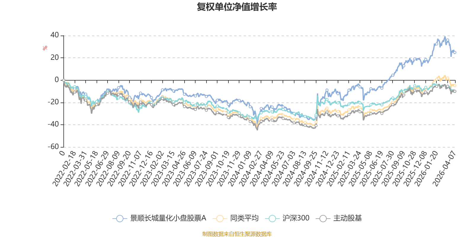 截至4月7日,景顺长城量化小盘股票A近三个月复权单位净值增长率为-1.52%,位于同类可比基金40/167;近半年复权单位净值增长率为5.30%,位于同类可比基金38/167;近一年复权单位净值增长率为51.97%,位于同类可比基金48/165;近三年复权单位净值增长率为35.18%,位于同类可比基金29/157。