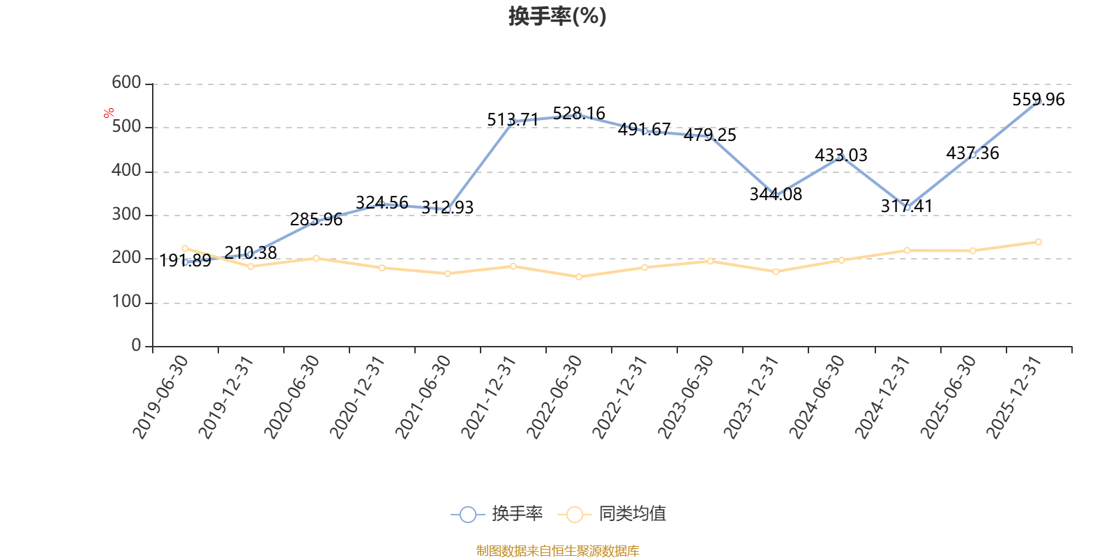 截至2025年12月31日,基金最近一年换手率约1003.09%,持续6年高于同类均值。
