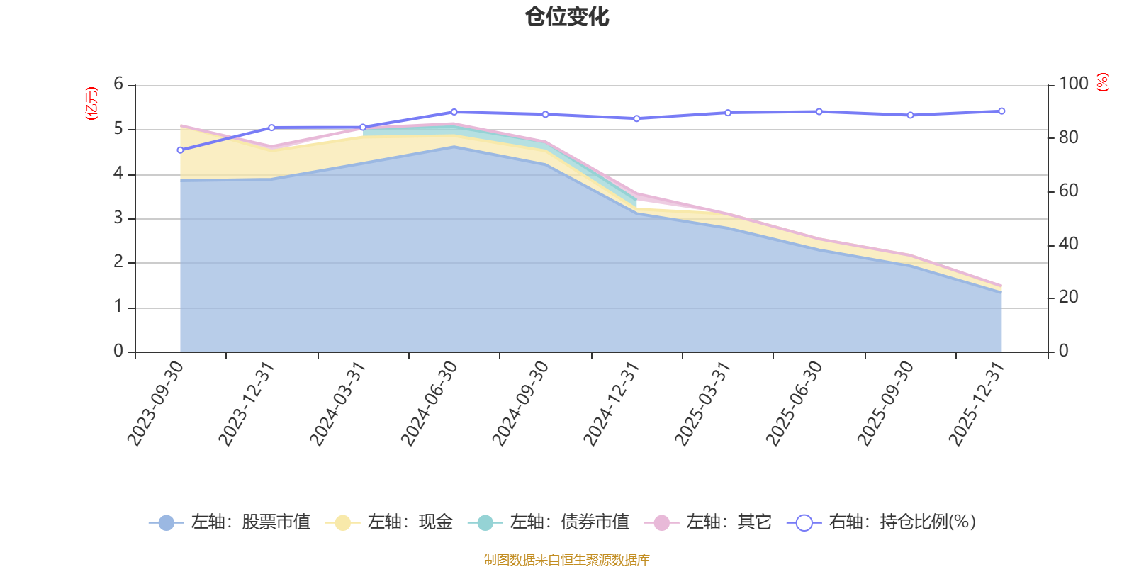 据定期报告数据统计,成立以来平均股票仓位为86.89%,同类平均为88.27%。2025年末基金达到90.27%的最高仓位,2023年三季度末最低,为75.63%。