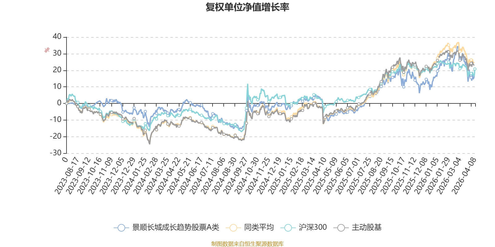 截至4月7日,景顺长城成长趋势股票A类近三个月复权单位净值增长率为-3.71%,位于同类可比基金71/167;近半年复权单位净值增长率为-3.10%,位于同类可比基金106/167;近一年复权单位净值增长率为30.55%,位于同类可比基金109/165。