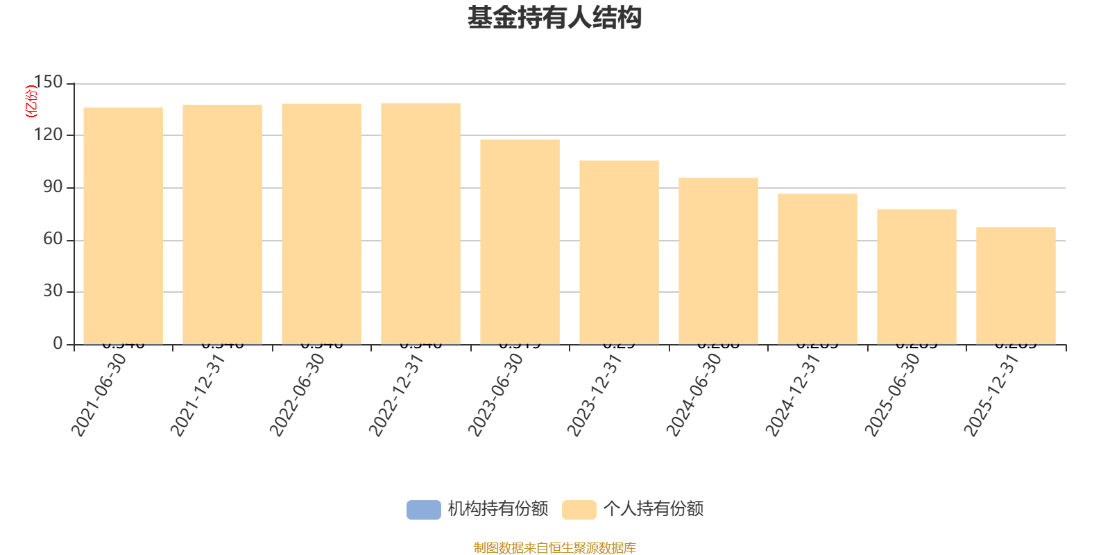截至2025年12月31日,基金持有人共计11.53万户,合计持有67.37亿份。其中管理人员工持有568.01万份,占比0.08%,机构持有份额占比0.42%,个人投资者占比99.58%。