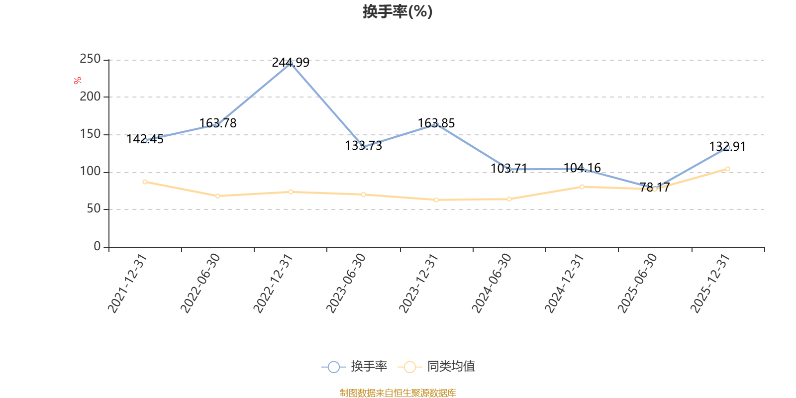 截至2025年12月31日,基金最近一年换手率约211.27%,持续高于同类均值。