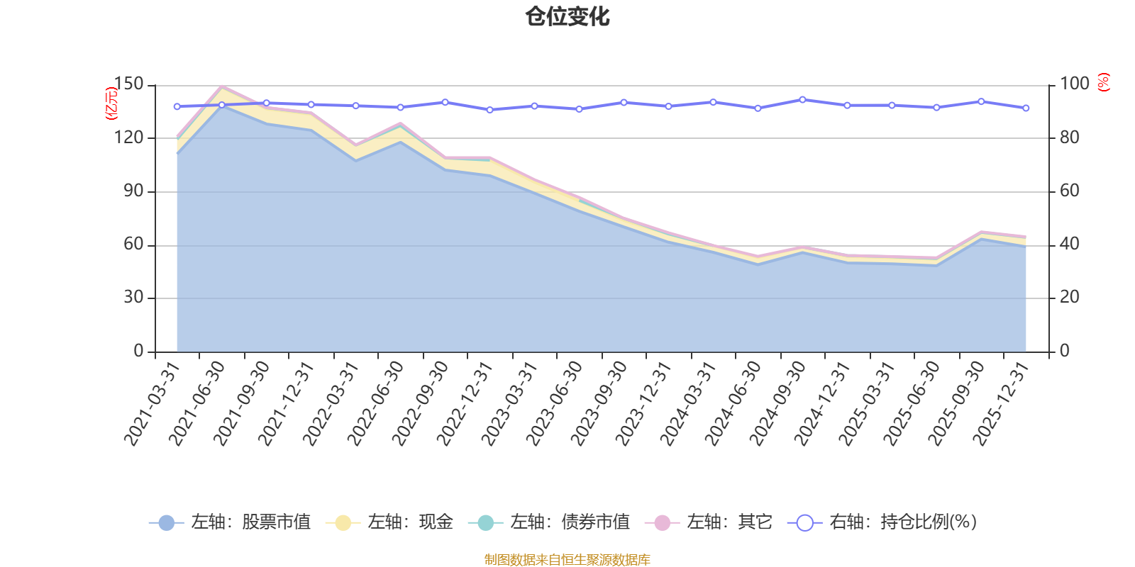 据定期报告数据统计,基金股票仓位长期保持较高水平,近三年平均股票仓位为92.47%,同类平均为86.82%。2024年三季度末基金达到94.54%的最高仓位,2022年末最低,为90.69%。