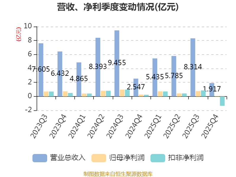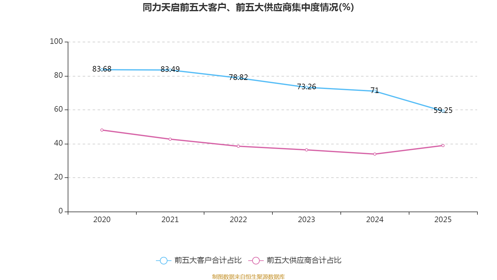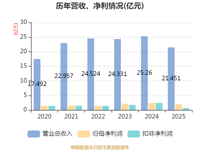 中证智能财讯同力天启(605286)4月9日披露2025年年度报告。2025年,公司实现营业总收入21.45亿元,同比下降15.08%;归母净利润1.99亿元,同比下降19.37%;扣非净利润6417.09万元,同比下降73.48%;经营活动产生的现金流量净额为-9003.02万元,上年同期为3.77亿元;报告期内,同力天启基本每股收益为1.18元,加权平均净资产收益率为9.62%。公司2025年度分配预案为:拟向全体股东每10股派现0.6元(含税)。