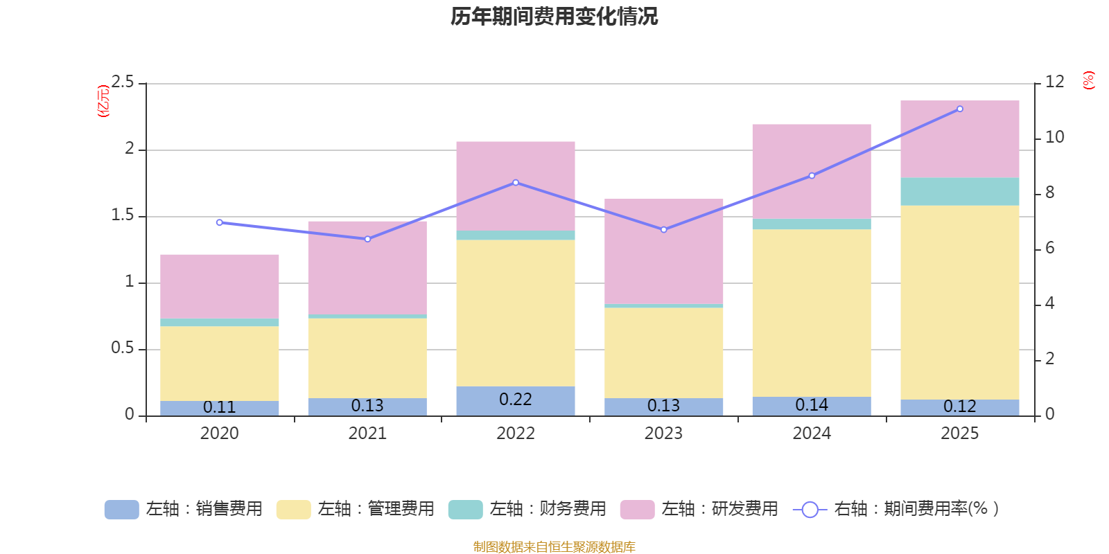 2025年全年,公司研发投入金额为5778.38万元,同比下降18.55%;研发投入占营业收入比例为2.69%,相比上年同期下降0.12个百分点。此外,公司全年研发投入资本化率为0%。