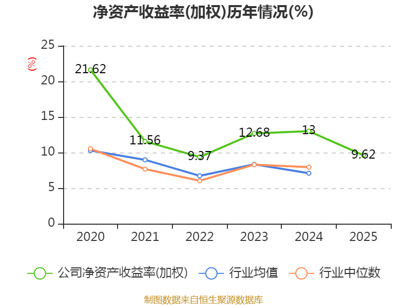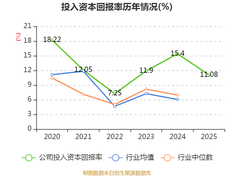数据显示,2025年公司加权平均净资产收益率为9.62%,较上年同期下降3.38个百分点。公司2025年投入资本回报率为11.08%,较上年同期下降4.32个百分点。